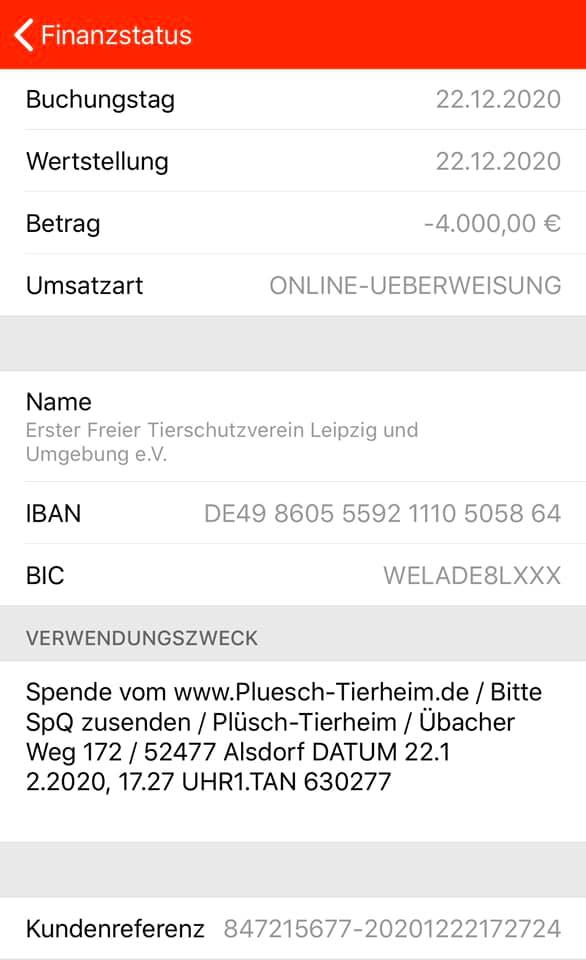 20.000€: Mega, wir haben gerade dem Tierheim in Leipzig 4000€ gespendet.