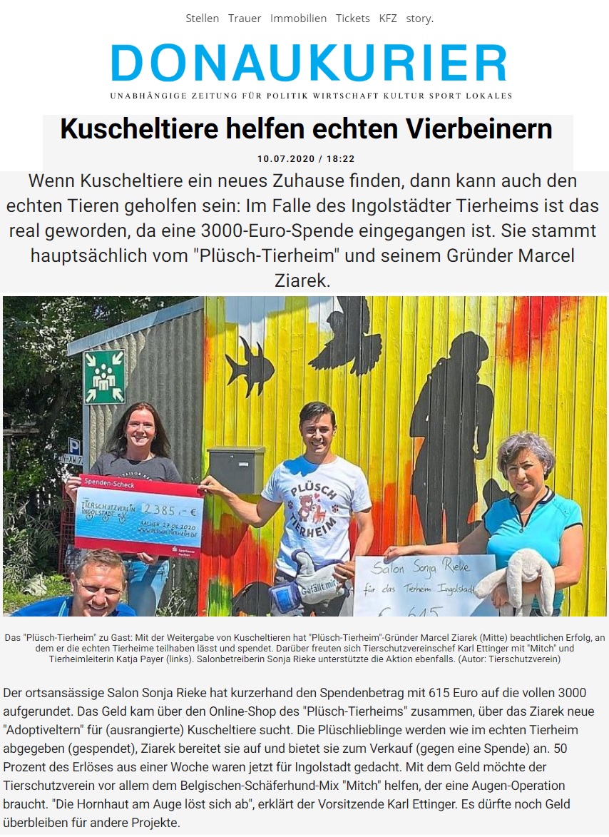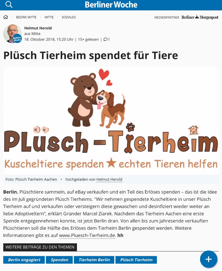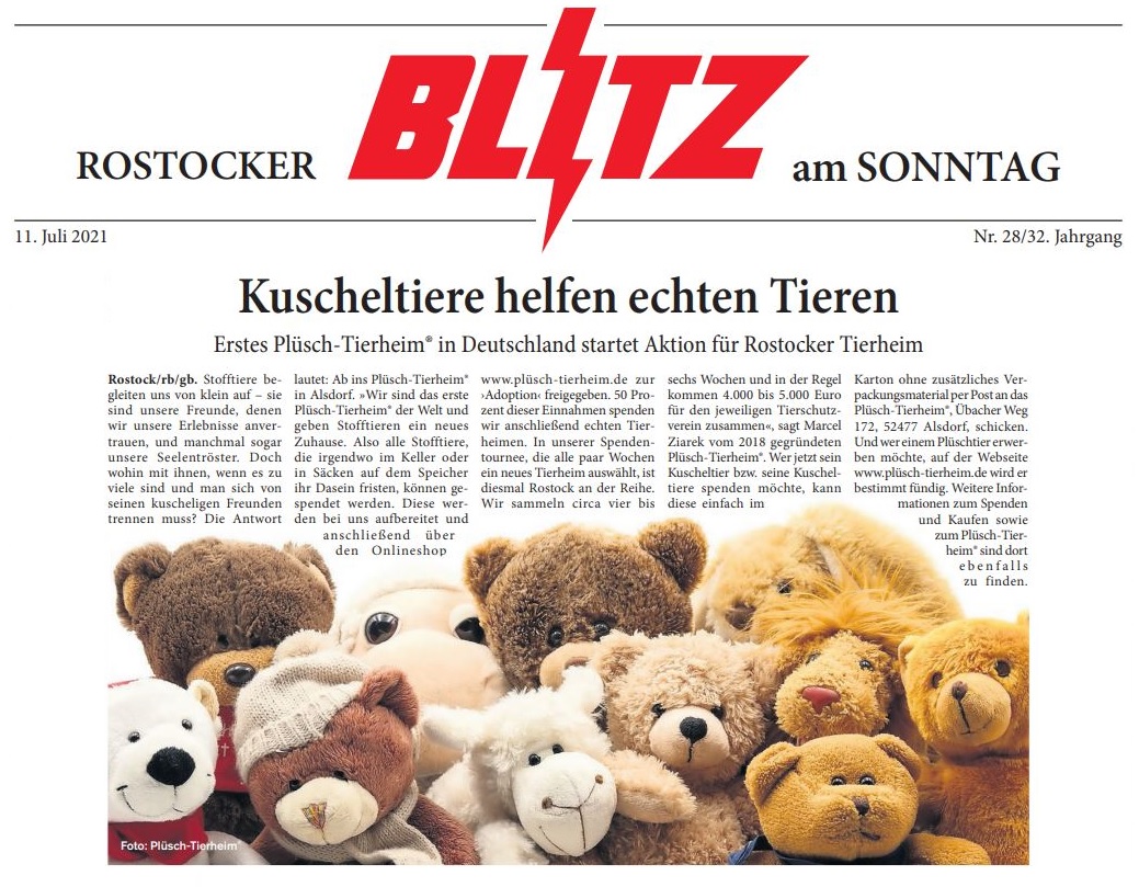 Über unser Plüsch Tierheim Konzept wurde in sämtlichen Medien berichtet. Hier findest Du eine kleine Auswahl.